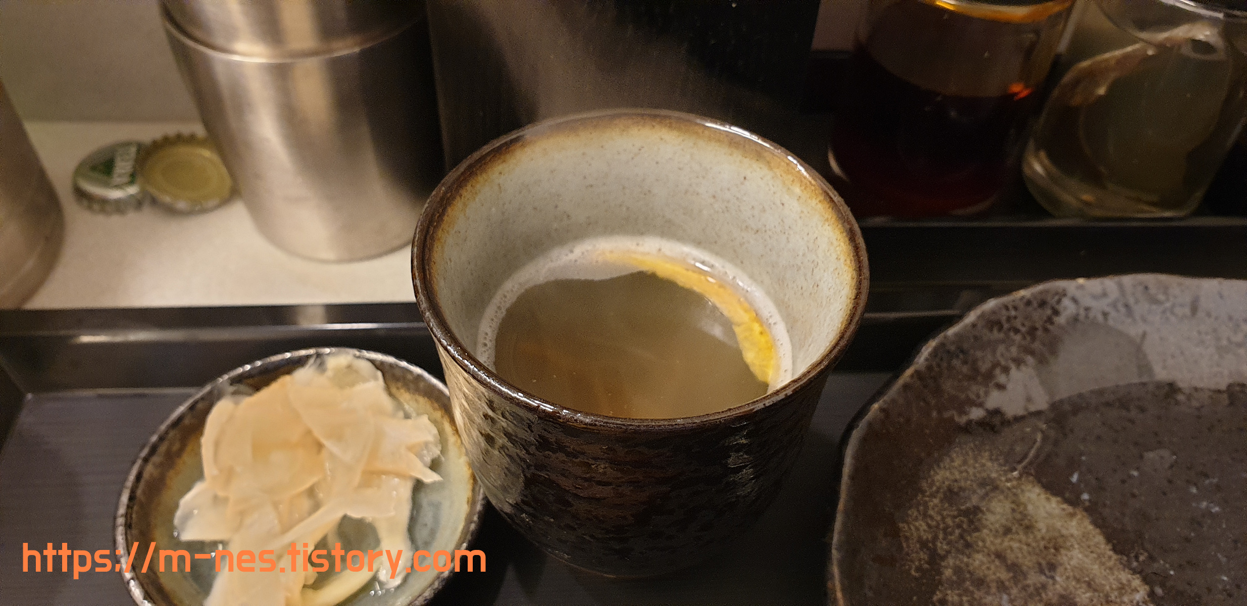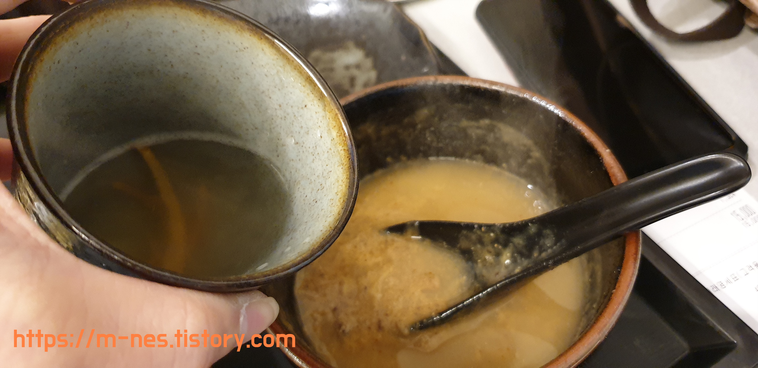 청탕 육수를 생으로 맛봤다.