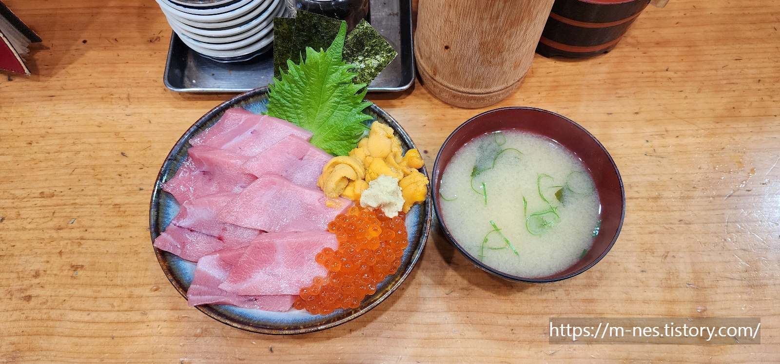 필자는 참치 + 우니 + 이쿠라(연어알)이
