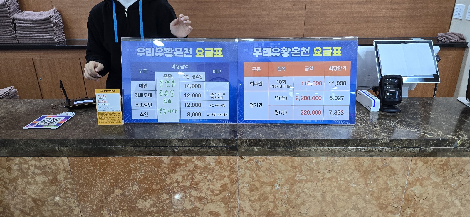이 곳 구의동 우리유황온천의 가격표