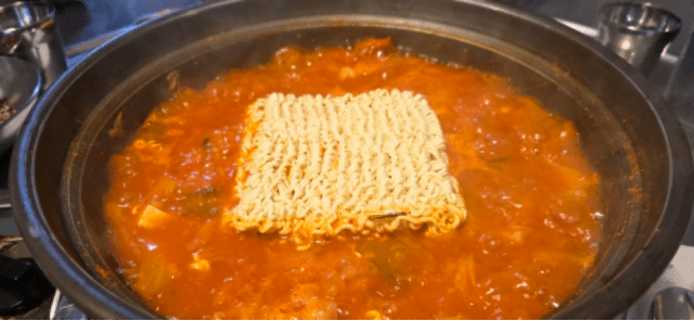 이제 먹으면서 끓이면 되는데 라면먼저 투하..