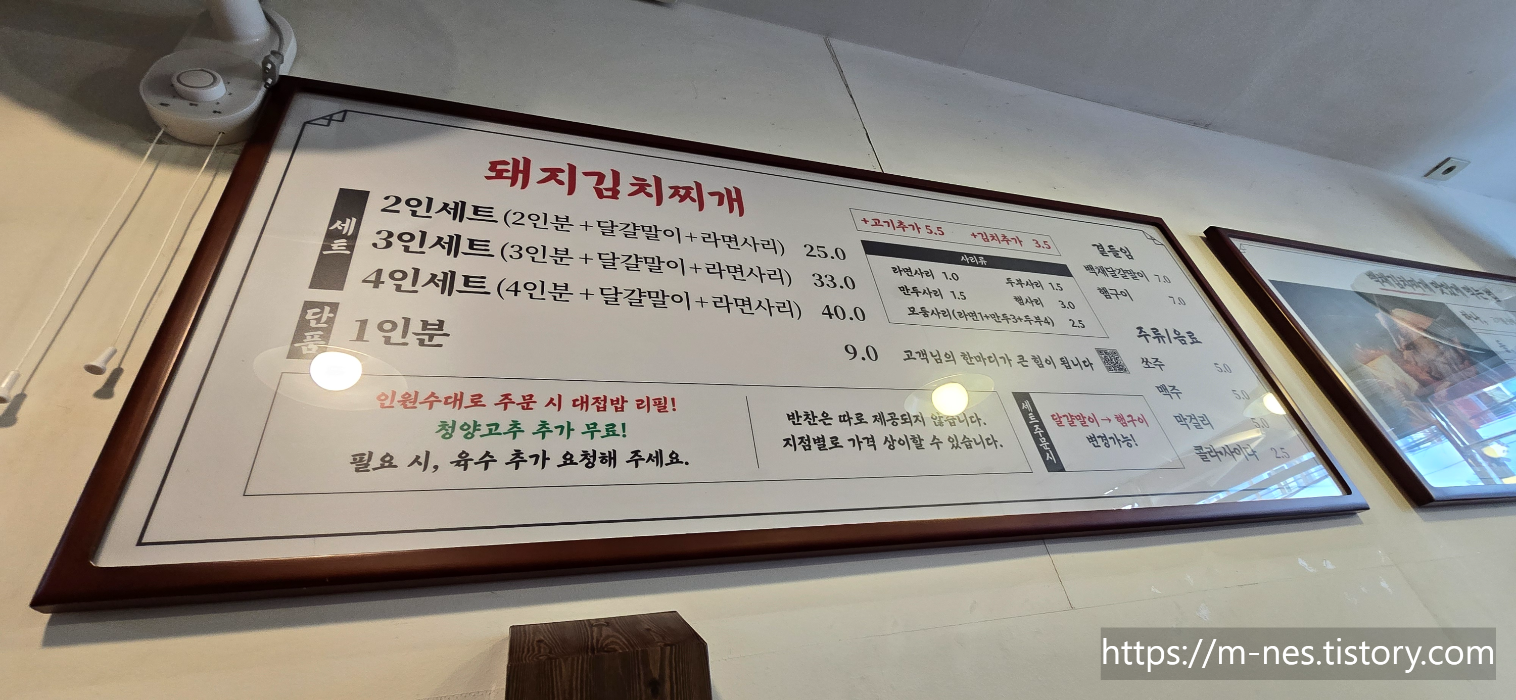 백채김치찌개도 다른곳과 메뉴는