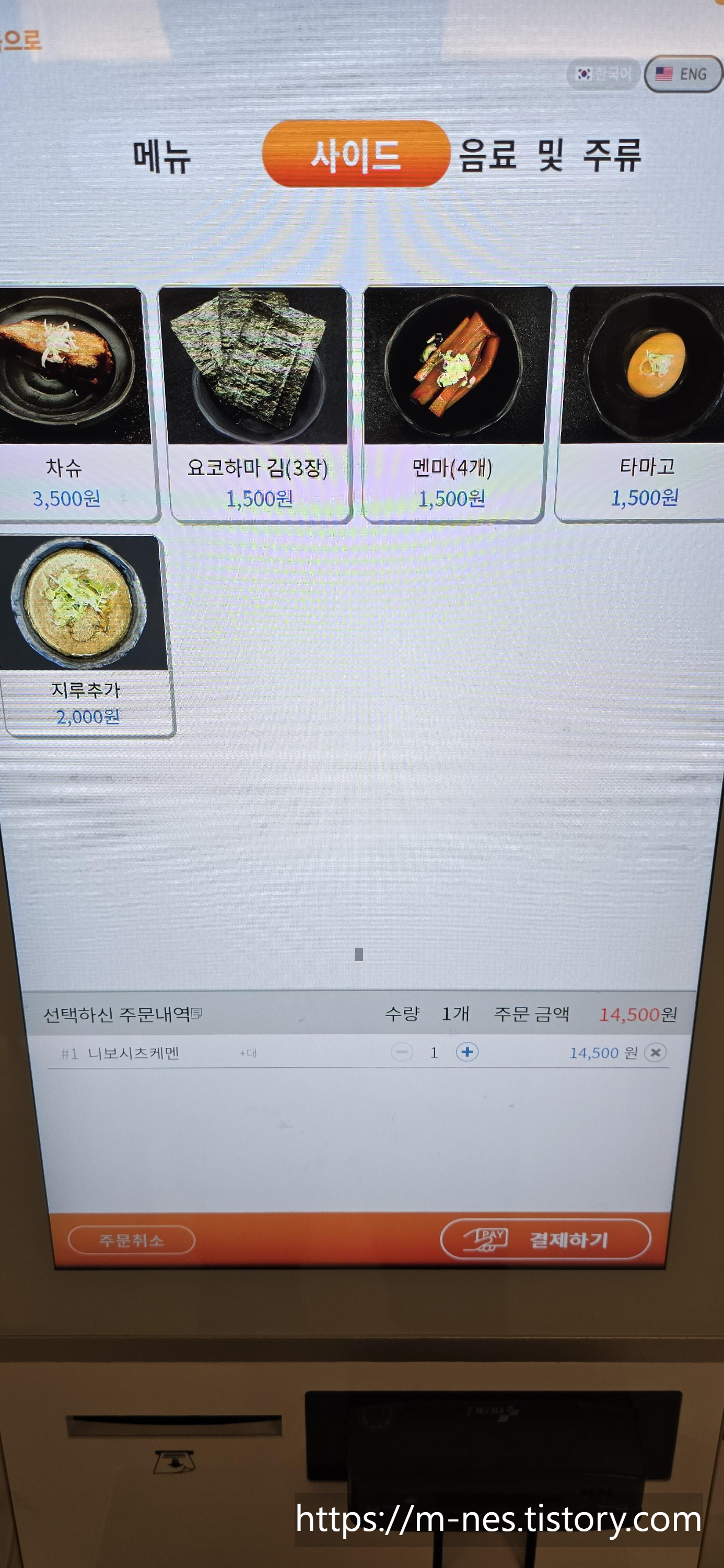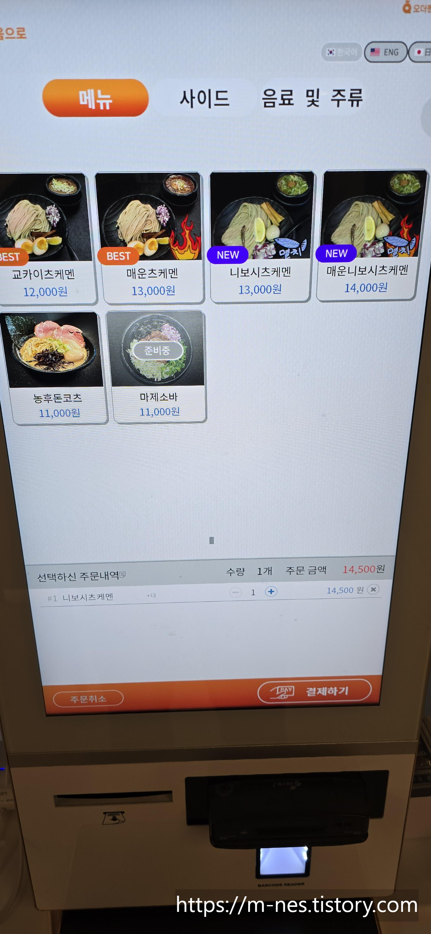 필자가 주문한 니보시 츠케멘.
