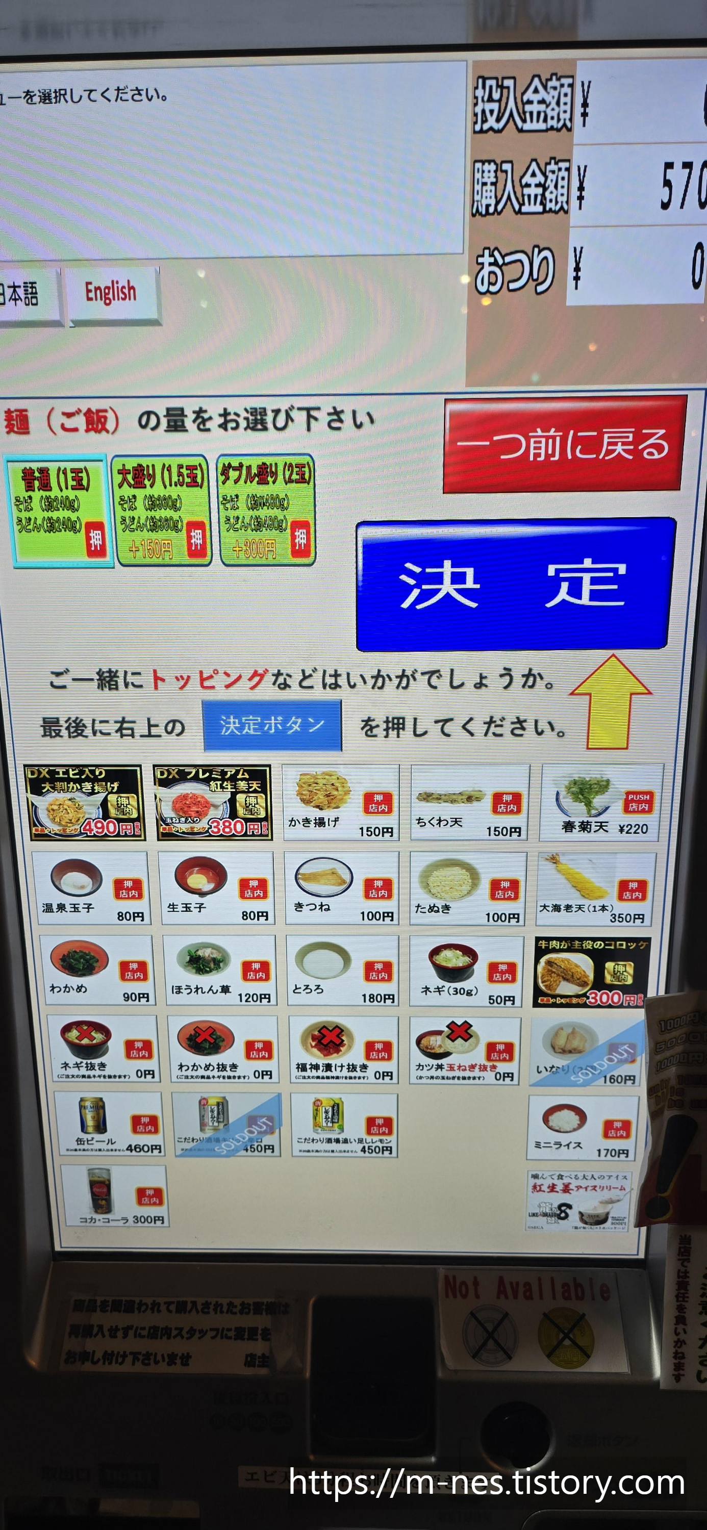 필자는 가키아게 우동으로 선택.