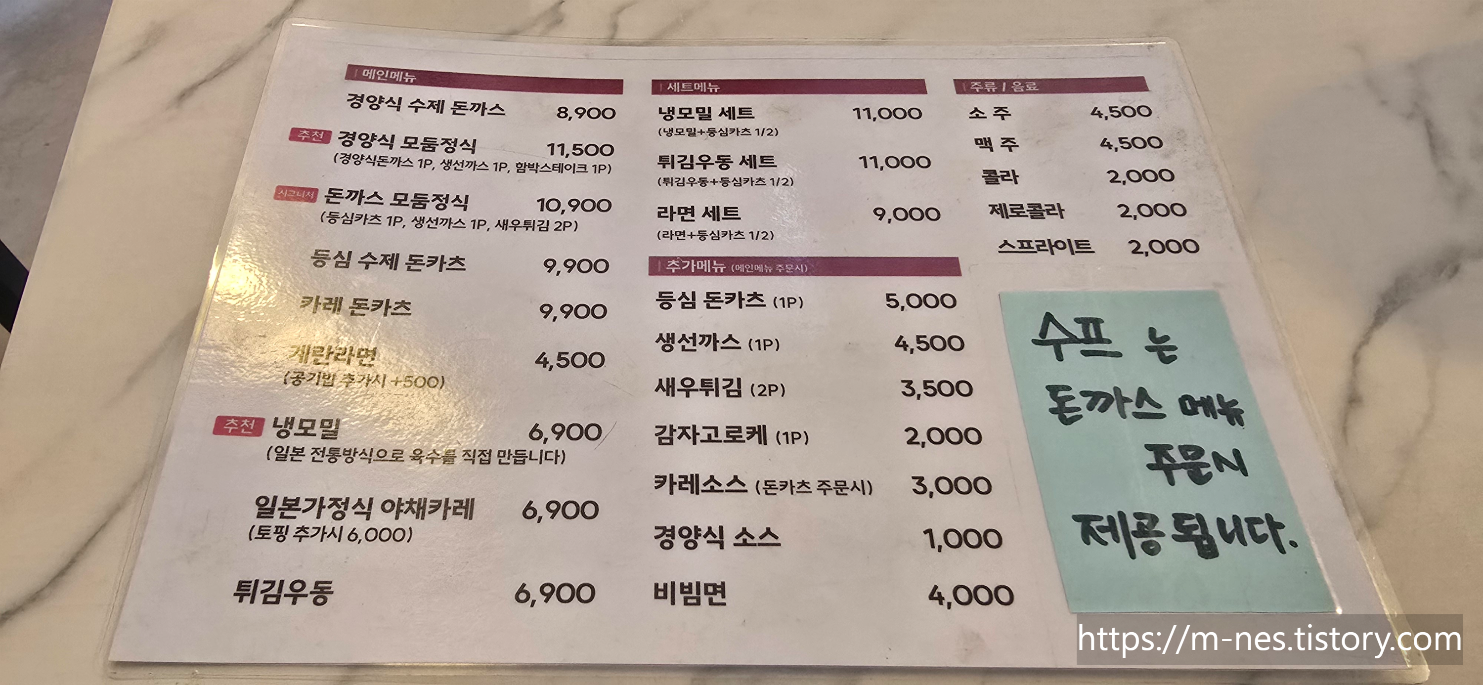 수프는 돈까스 메뉴 시킨 사람만 준다고 한다.