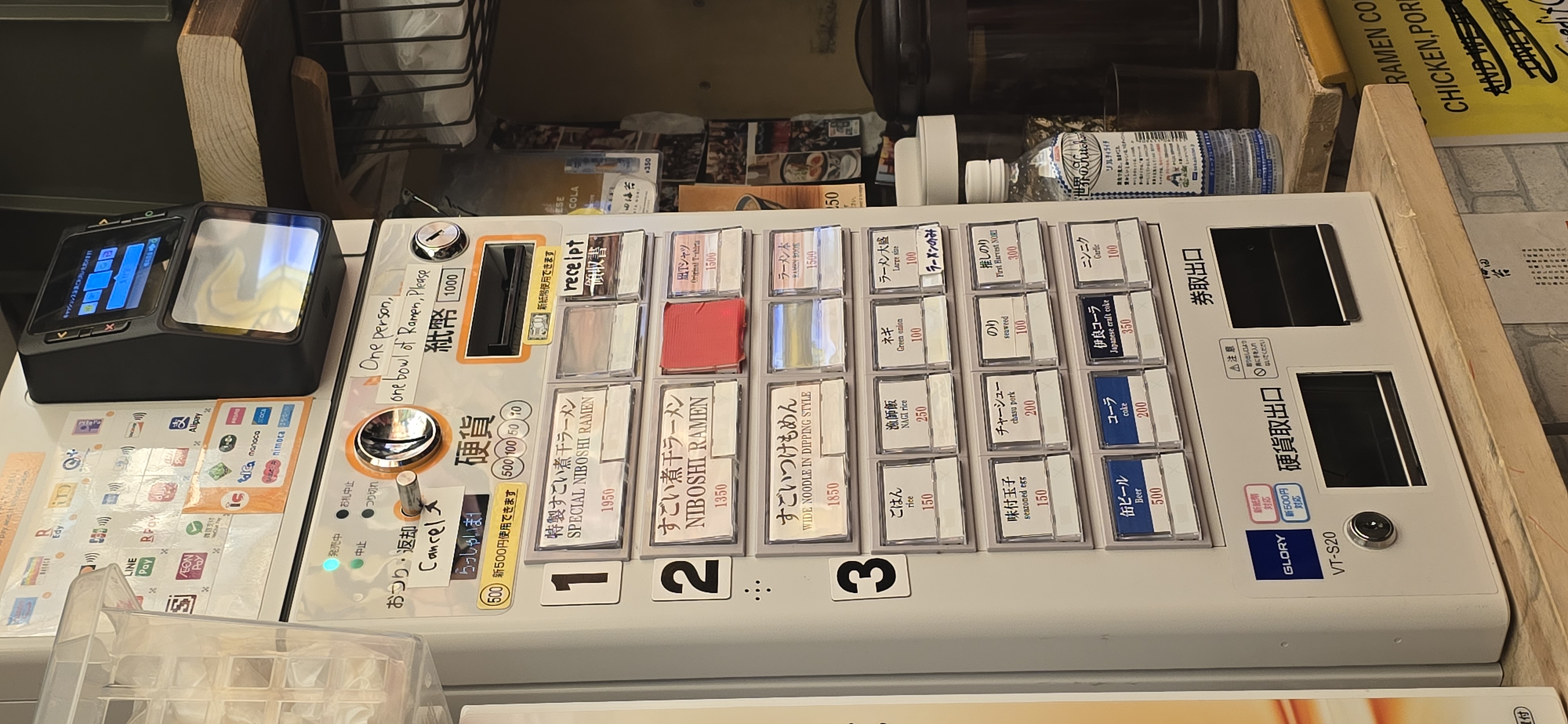 라멘은 이렇게 현금과 전자머니로 결제가 가능하다.