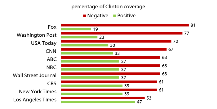 힐러리 클린턴의 긍정 기사비율을 증명하듯