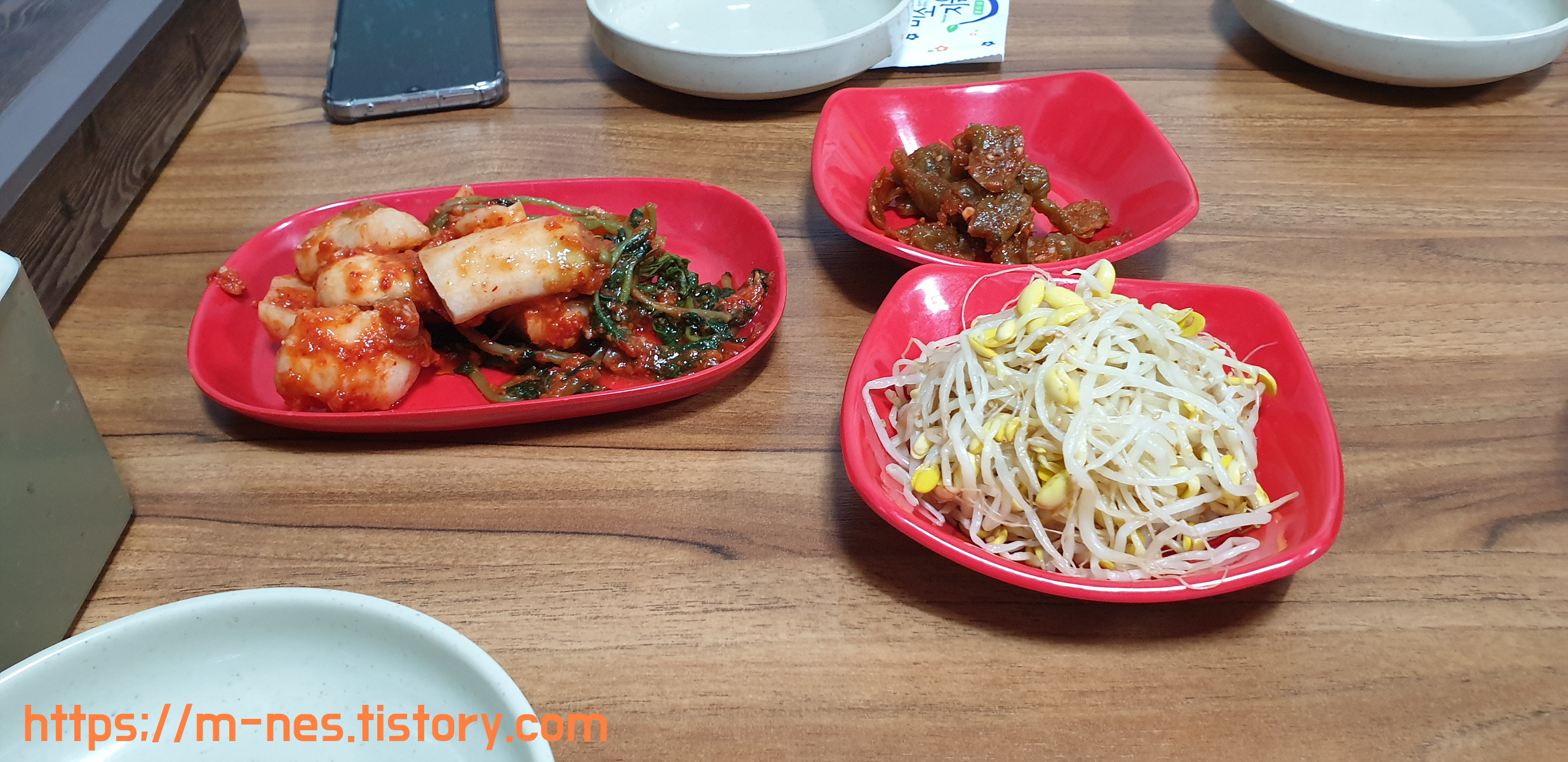 반찬은 콩나물과 총각김치.