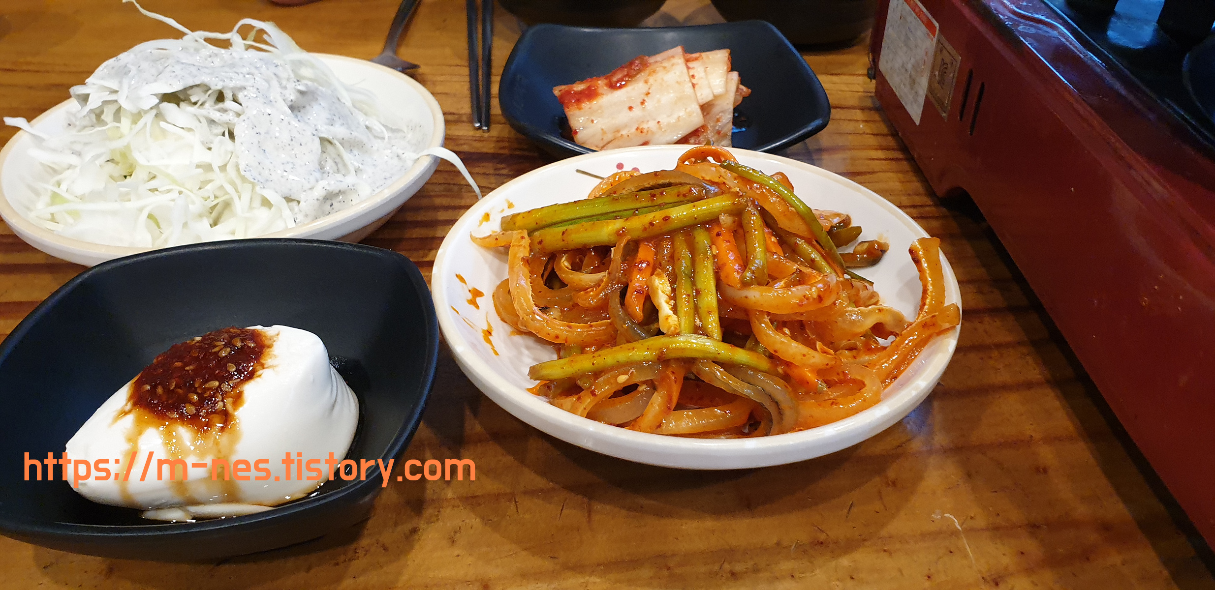 오징어젓갈과 샐러드. 그리고 순두부.