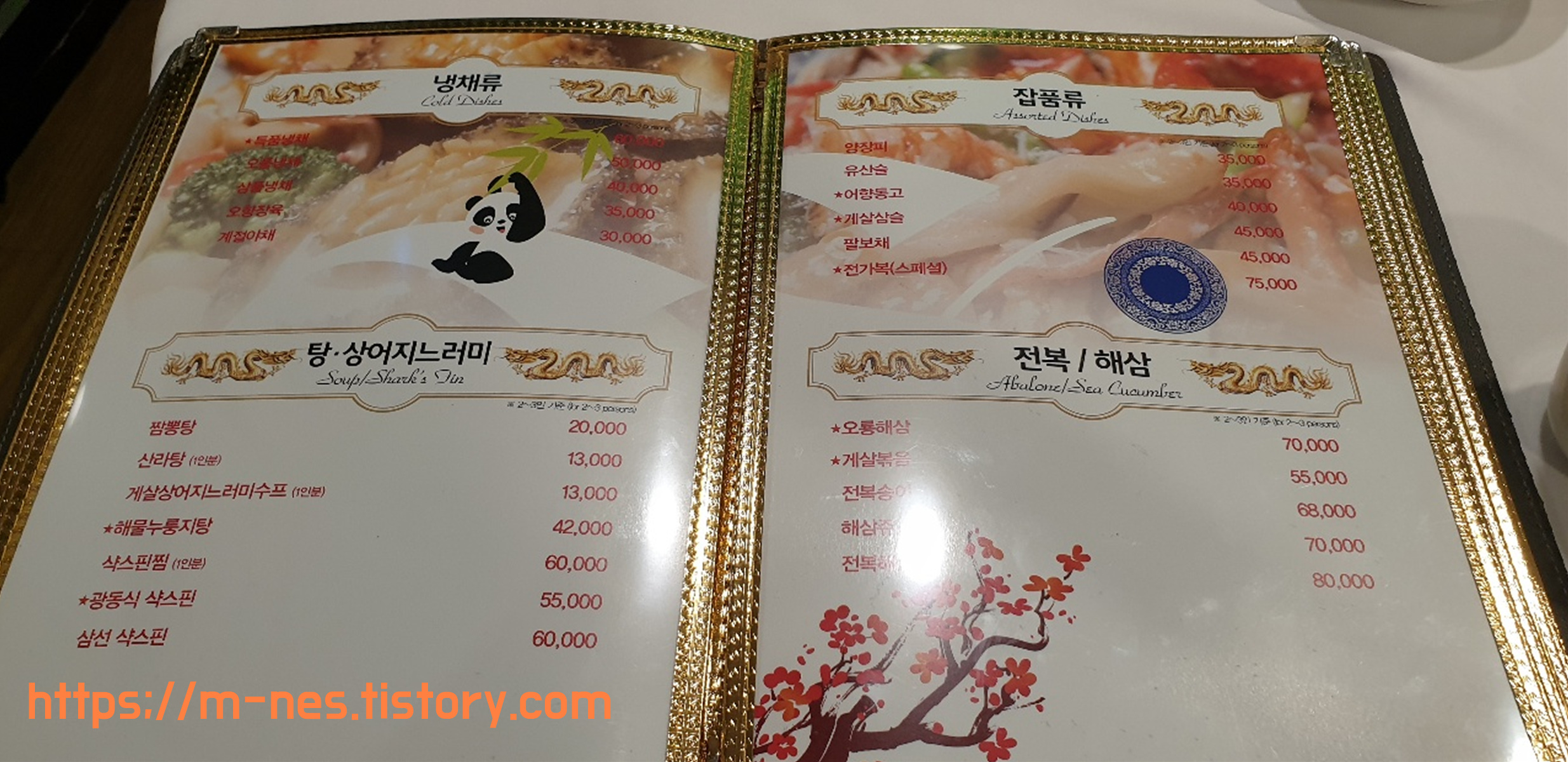 보통 좀 비싼 단가의 중화요리 전문점에서