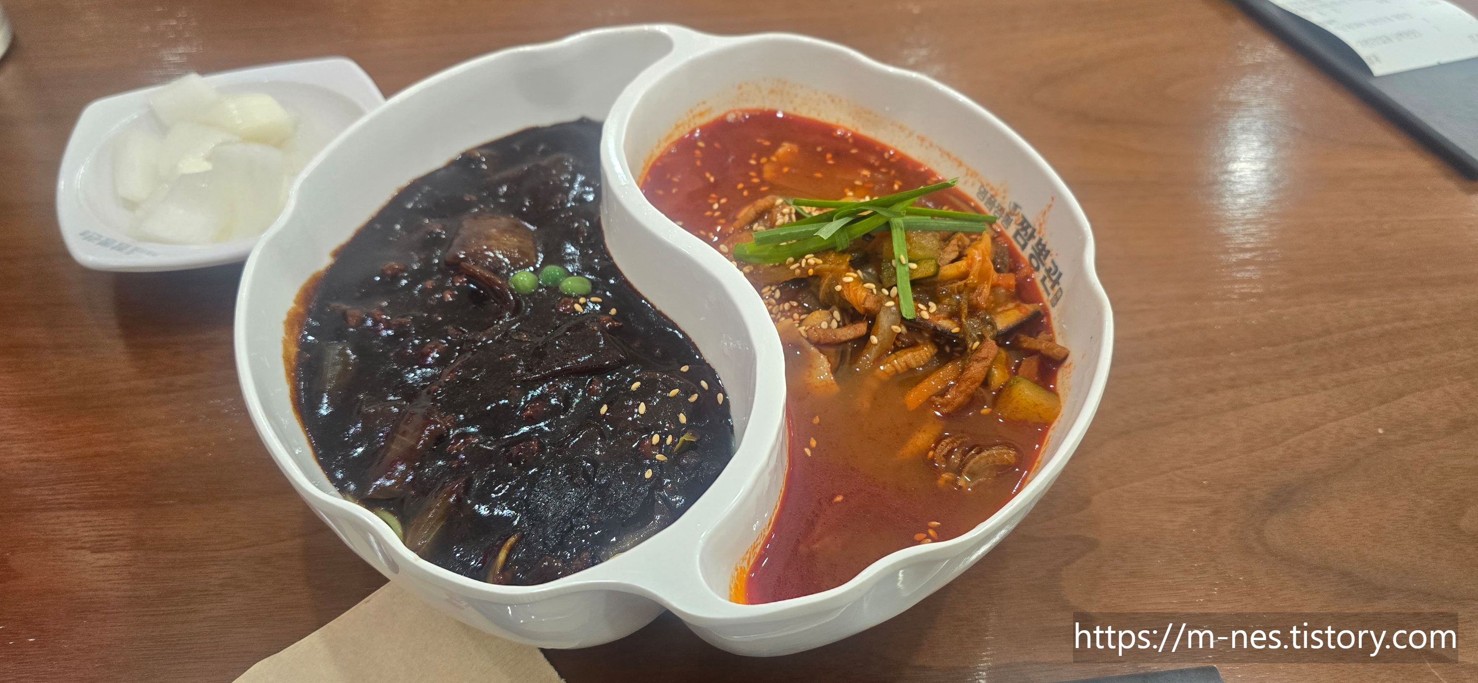 필자는 짬짜면에 제일 매운 단계로 주문.