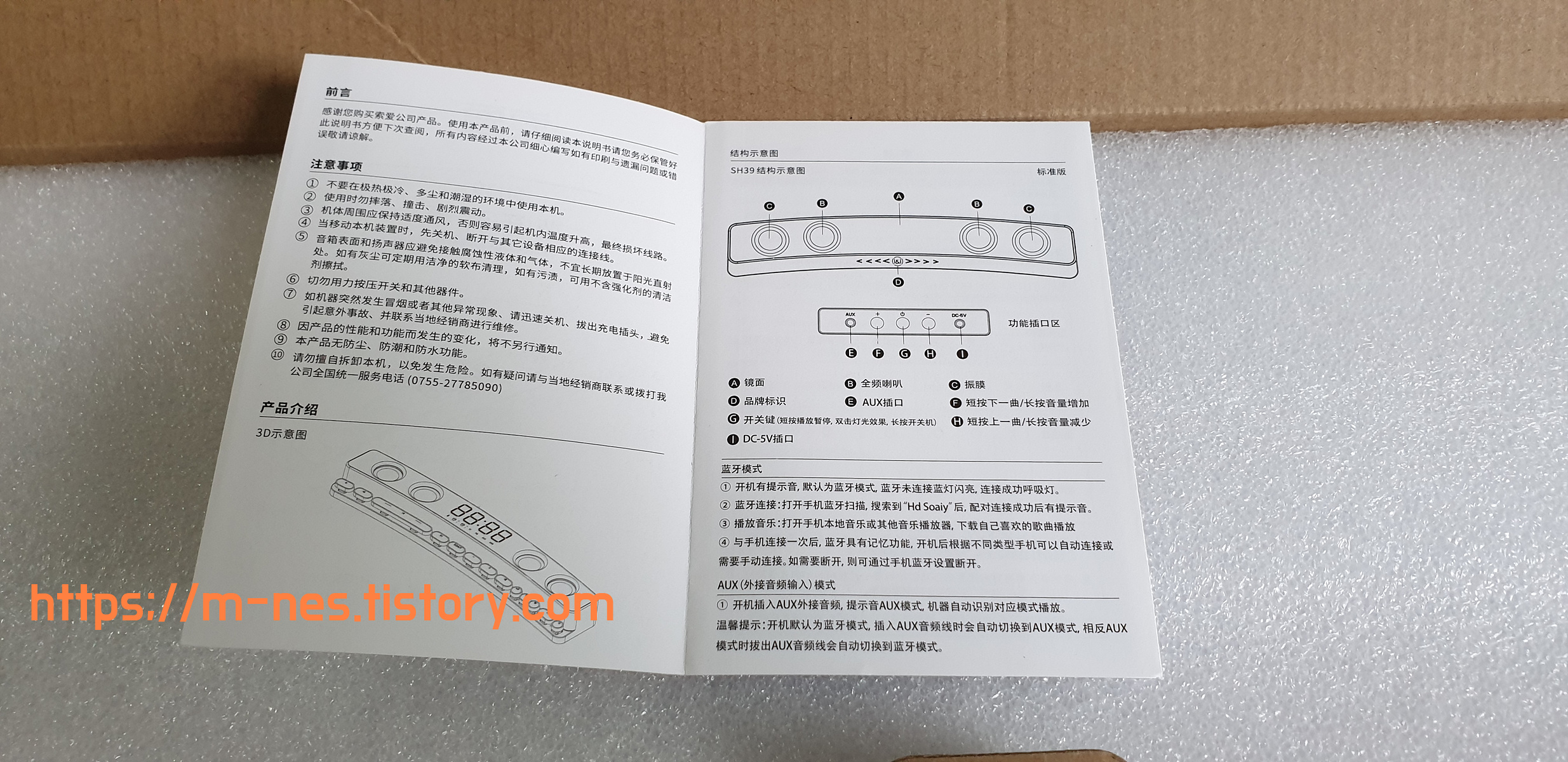 패키지로 보관되어 배송된 스피커의